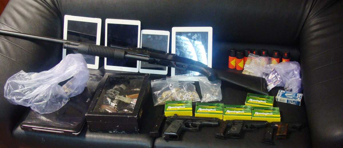 - Τέσσερα πιστόλια αερίου κρότου και επτά σπρέι πιπεριού