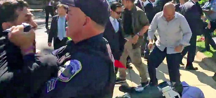 Οι σωματοφύλακες του Ερντογάν πρωταγωνίστησαν επίσης και σε επεισόδια που συνέβησαν έξω από τον Λευκό Οίκο την ίδια μέρα λίγο πριν τη συνάντηση Τραμπ-Ερντογάν.